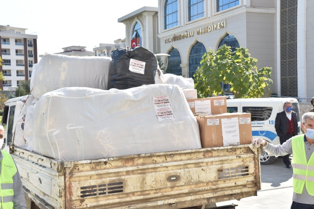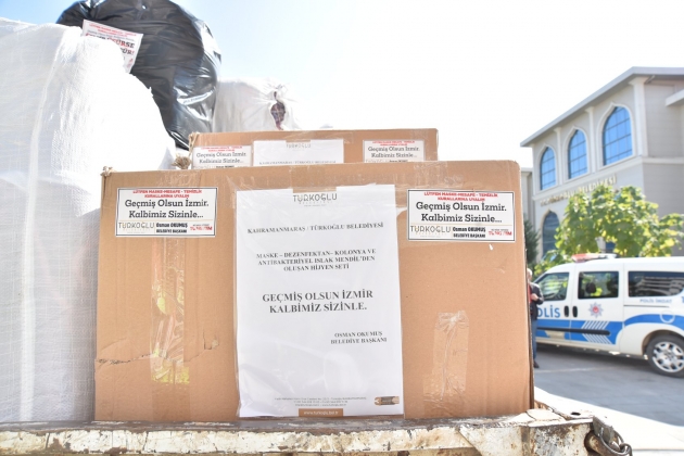 Kahramanmaraş'ın Türkoğlu Belediyesince düzenlenen "İzmir üşürse Türkiye üşür " kampanyası kapsamında deprem bölgesine gönderilmek üzere toplamda 5 bin parça olmak üzere battaniye, kışlık kıyafet, yeni doğan ve hijyen seti hazırlandı.Belediye Başkanı Osman Okumuş, gazetecilere yaptığı açıklamada, Seferihisar açıklarında meydana gelen 6,6 büyüklüğündeki deprem sonrası bölge halkına destek olmak istediklerini belirtti.Bu kapsamda depremden etkilenenler için başlatılan "Türkiye İzmir için tek yürek" kampanyasına destek olmak adına "İzmir üşürse Türkiye üşür" sloganıyla çalışma başlattıklarını ifade eden Okumuş, şöyle konuştu: "İzmir'de yaşanan deprem felaketi, tüm ülkede olduğu gibi ilçemizde de derin üzüntüyle karşılandı. Yaşanan felaketin ardından 'Bölge halkı için ne yapabiliriz' düşüncesiyle böyle bir kampanya başlattık. Hızlı bir şekilde hazırlıklarımızı tamamlayıp kış şartlarını da göz önünde bulundurarak ilk etapta bölgeye battaniye, yeni doğan çocuk paketleri, hijyen setleri ve kışlık kıyafet desteği sağlamaya karar verdik. İzmirli kardeşlerimizle aramızda mesafeler olsa da bu yardımlarla Türkoğlu'ndan İzmir'e bir bağ kurmuş oluyoruz."Bölgeye gönderilmek üzere hazırlanan 5 bin parça malzemeye maske ve kolonya da eklediklerini ifade eden Okumuş, hazırlanan yardımları Türkoğlu Kaymakamı Gürbüz Saltaş'a teslim etti.Saltaş, kampanyaya destek olan herkese teşekkür etti.Konuşmaların ardından toplanan yardımlar, İzmir'deki depremzedelere ulaştırılmak üzere Kahramanmaraş Valiliğine gönderildi.