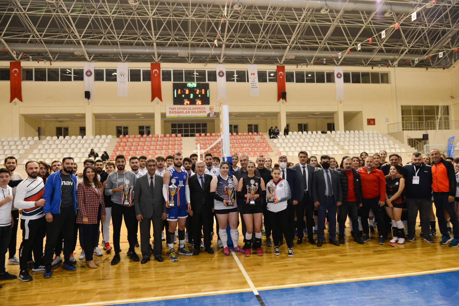 Üniversitemiz Ev Sahipliğinde Gerçekleştirilen TÜSF Üniversiteler Voleybol 2. Lig Kadın-Erkek Grup Birinciliği Müsabakalarında Dereceye Giren Takımlara Kupaları Törenle Verildi