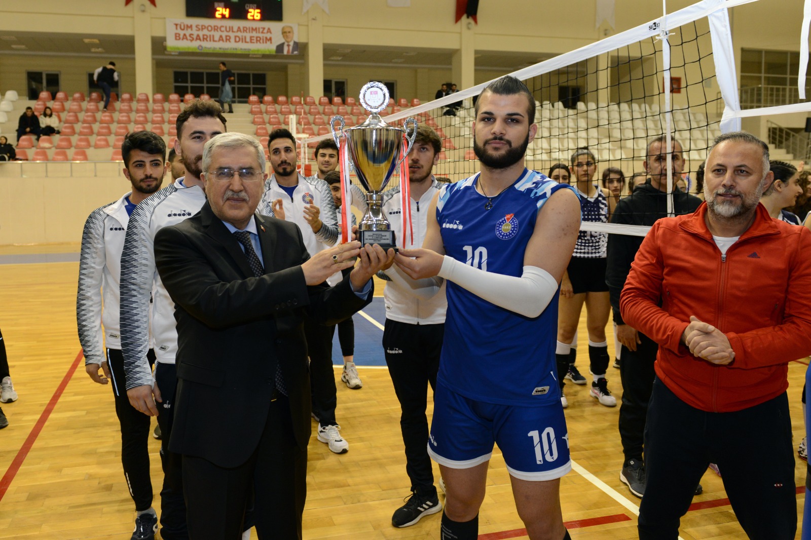 Derceye giren ve müsabakalarda ter döken bütün takımları tebrik eden KSÜ Rektörü Prof. Dr. Niyazi Can, Türkiye Üniversite Sporları Federasyonu, Üniversiteler Voleybol 2. Lig Grup Birinciliği müsabakalarına ev sahipliği yapmaktan duydukları memnuniyeti dile getirdi.