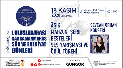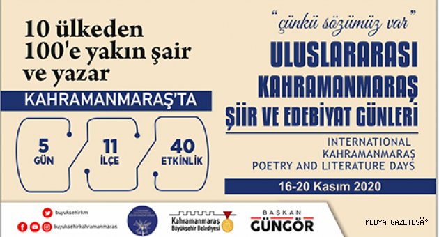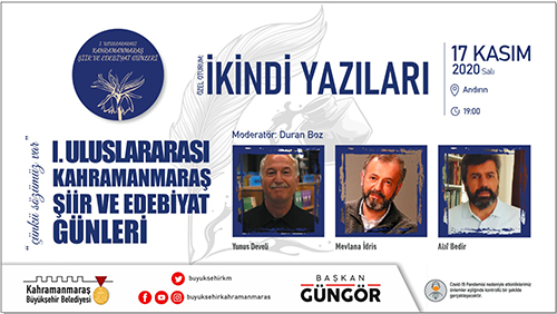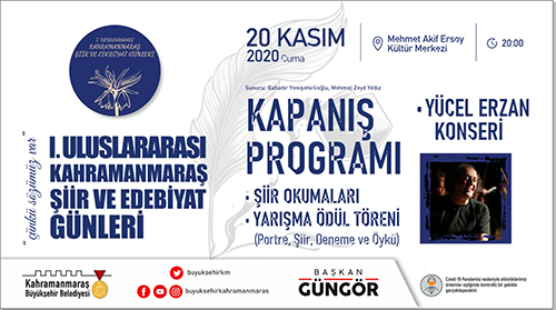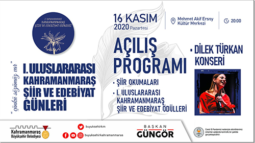 Kahramanmaraş Büyükşehir Belediyesi 1. Uluslararası Şiir ve Edebiyat Günleri başlıyor. 16 – 20 Kasım tarihlerinde 11 ilçede gerçekleştirilecek 40’ın üzerinde etkinlikte şiir ve edebiyat konuşulacak. Şiir, Öykü, Deneme ve Portre Yarışmaları ile Aşık Mahzuni Besteleri Ses Yarışması’nda dereceye girenlere ödülleri verilecek. Yine bir ilk olacak uluslararası etkinlik kapsamında Kahramanmaraş Şiir ve Edebiyat Ödülleri de sahiplerini bulacak.Dilek Türkan KonseriKonu ile ilgili olarak Kültür Turizm ve Spor Dairesi Başkanlığı tarafından yapılan açıklamada, “Tüm ilçelerimizde, 10 farklı ülkeden şair ve yazarın katılımıyla 40’ın üzerinde etkinlik gerçekleştireceğiz. Özel oturumlar ve Yazar-Okur buluşmalarını içeren ilk günde ayrıca öykü, şiir, deneme ve portre yarışmaları ödül töreni de gerçekleştirilecek. 16 Kasım Pazartesi, Mehmet Akif Kültür Merkezi’nde 20.00’da başlayacak açılış etkinliğinde Dilek Türkan konseri de yer alıyor” denildi.Aşık Mahzuni Besteleri Ses Yarışması5 gün boyunca kesintisiz bir şekilde sürecek etkinliklerde Sevcan Orhan’ın katılımıyla Aşık Mahzuni Şerif Besteleri Ses Yarışması ödül töreninin de gerçekleştirileceğinin belirtildiği açıklamada, “18 Kasım Çarşamba günü 20.00’da, Mehmet Akif Kültür Merkezi’nde Aşık Mahzuni Şerif Besteleri Ses Yarışması Ödül Töreni’ni gerçekleştireceğiz. Bu programımızda sanatçı Sevcan Orhan bir konser de verecek” ifadeleri kullanıldı.Serdar Tuncer ile Şiir GecesiEtkinlikler kapsamında 19 Kasım Perşembe günü ‘Şiir Gecesi’ düzenleneceği de belirtilerek, “Mehmet Akif Ersoy Kültür Merkezi’nde, 19.00’da başlayacak etkinlikte Serdar Tuncer’in de katılımıyla Şiir Gecesi düzenlenecek. Yurt için ve yurt dışından değerli şair ve yazarların da yer alacağı programda Kahramanmaraşlı sanatçıların eserleri seslendirilecek” denildi. Programın kapanış gününde ise Uluslararası Kahramanmaraş Şiir ve Edebiyat Ödülleri sahiplerini bulacak. Kahramanmaraş Edebiyat Ödülleri 20 Kasım Cuma, 20.00’da gerçekleştirilecek etkinlikle ilgili olarak, “Erdem Bayazıt Şiir Ödülü, Nuri Pakdil Araştırma Ödülü, Rasim Özdenören Öykü Ödülü, Tahsin Yücel Roman Ödülü, Cahit Zarifoğlu Çocuk Edebiyatı Ödülü, Bahaettin Karakoç Dijital Edebiyat Kültür Platformu Ödülü, Abdurrahim Karakoç TV Edebiyat Programı Ödülü ve Yedi Güzel Adam Jüri Özel Ödülü sahiplerini bulacak. Mehmet Akif Ersoy Kültür Merkezi’nde, sunuculuğunu Bahadır Yenişehirlioğlu ile Mehmet Zeyd Yıldız’ın yapacağı etkinlikte sanatçı Yücel Arzen Kahramanmaraşlılarla buluşacak” ifadeleri kullanıldı. Programların pandemi tedbirleri kapsamında gerçekleştirileceğinin de belirtildiği açıklamada ayrıntılı bilgilerin https://www.kmedebiyatgunleri.com/ adresinden paylaşıldığı ifade edildi.