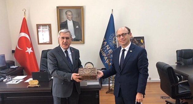Bir dizi toplantı ve görüşmeye katılmak üzere İstanbul’da bulunan Kahramanmaraş Sütçü İmam Üniversitesi Rektörü Prof. Dr. Niyazi Can, İstanbul Üniversitesi-Cerrahpaşa Rektörü Prof. Dr. Nuri Aydın ile bir araya gelerek, üniversite meselelerine ilişkin görüş alışverişi gerçekleştirdi.