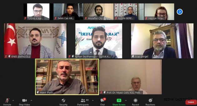 Programda TÜGVA Kahramanmaraş İl Temsilcisi Öğr. Gör. Furkan Seyithanoğlu Kahramanmaraş Diplomasi Okulu projesine ilişkin bilgileri paylaştı. Projeye 1000’e yakın başvuru alındığını ve 200 genç diplomat adayı belirlenen kriterleri sağlayıp mülakata girmeye hak kazandığını belirten Seyithanoğlu, mülakatlarda en başarılı olan 60 adayın programa katılmaya hak kazandığını söyledi.