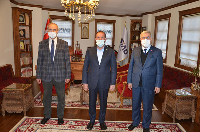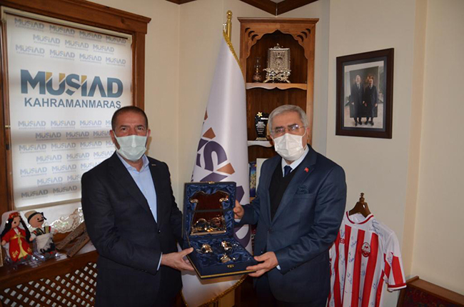 Kuyumculuk sektörüyle birlikte hayata geçirdiğimiz ‘KSÜ 3D Modelleme ve Tasarım Merkezi’ ile ‘Kahramanmaraş Altın ve Mücevher Merkezi’ (Altınşehir) projesi ve metal mutfak eşyası sektörüyle birlikte yürüttüğümüz Kahramanmaraş Metal Mutfak Eşyası AR-GE ve Tasarım Merkezi projemiz büyük heyecan yarattı. Kahramanmaraş’ın öncü sektörleriyle fark yaratan önemli projelere imza atmayı sürdüreceğiz.” şeklinde konuştu.Ziyaretten duyduğu memnuniyeti dile getiren MÜSİAD Kahramanmaraş Şubesi Başkanı Sami Kervancıoğlu ise şehrin meselelerini sahiplenen, sanayi sektörünün ihtiyaç duyduğu her konuda desteklerini esirgemeyen Rektör Prof. Dr. Niyazi Can ve üniversite camiasına şükranlarını ifade etti.Daha etkili ve verimli işbirliklerinin arttırılarak sürdürülmesine ilişkin temennilerin ardından, MÜSİAD Kahramanmaraş Şubesi Başkanı Sami Kervancıoğlu, Rektör Prof. Dr. Niyazi Can’a teşekkür etti.