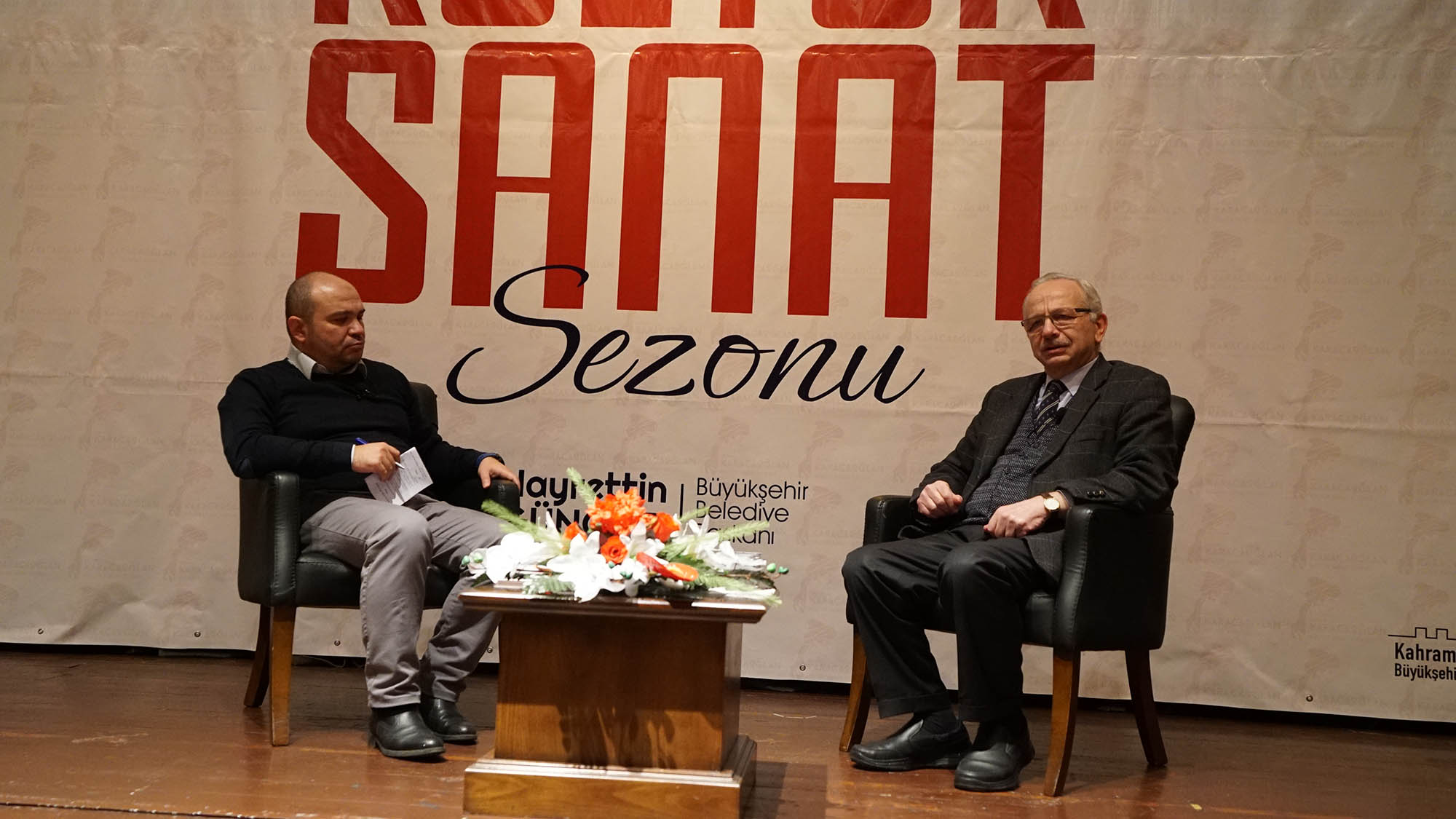 Kahramanmaraş Büyükşehir Belediyesi Aralık Kültür Sanat Etkinlikleri, önemli konu ve konuklarla devam ediyor. Takvim kapsamında, İlahiyatçı Yazar İsmail Kara söyleşi etkinliğinde edebiyatseverlerle bir araya geldi. Necip Fazıl Kısakürek Kültür Merkezi’nde Yazar Ömer Yalçınova’nın moderatörlüğünde düzenlenen etkinlikte, “Türkiye Merkezli Düşünmek” konusu konuşuldu. Yazı ve düşünce hayatıyla ilgili soruları cevaplayan usta yazar, Hareket Dergisi’nden Dergâh Yayınları’na uzanan serüveninden anekdotlar paylaştı. Etkinlik, Kültür Spor ve Turizm Daire Başkanı Duran Doğan tarafından yapılan çiçek takdimi ile noktalandı.