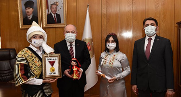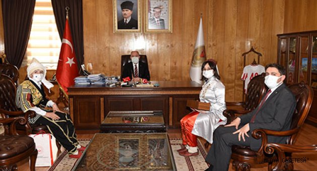 Şehrimizin düşman işgalinden kurtuluşunun 101’inci yıl dönümü etkinlikleri kapsamında Aile Çalışma ve Sosyal Hizmetler İl Müdürlüğümüze bağlı çocuk evlerinde kalan Sude Naz Severdim ile Emirhan Bunduk, giydikleri yöresel kıyafetlerle, Vali Ömer Faruk Coşkun’u ziyaret ettiler.