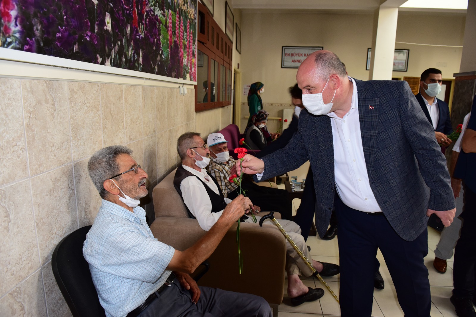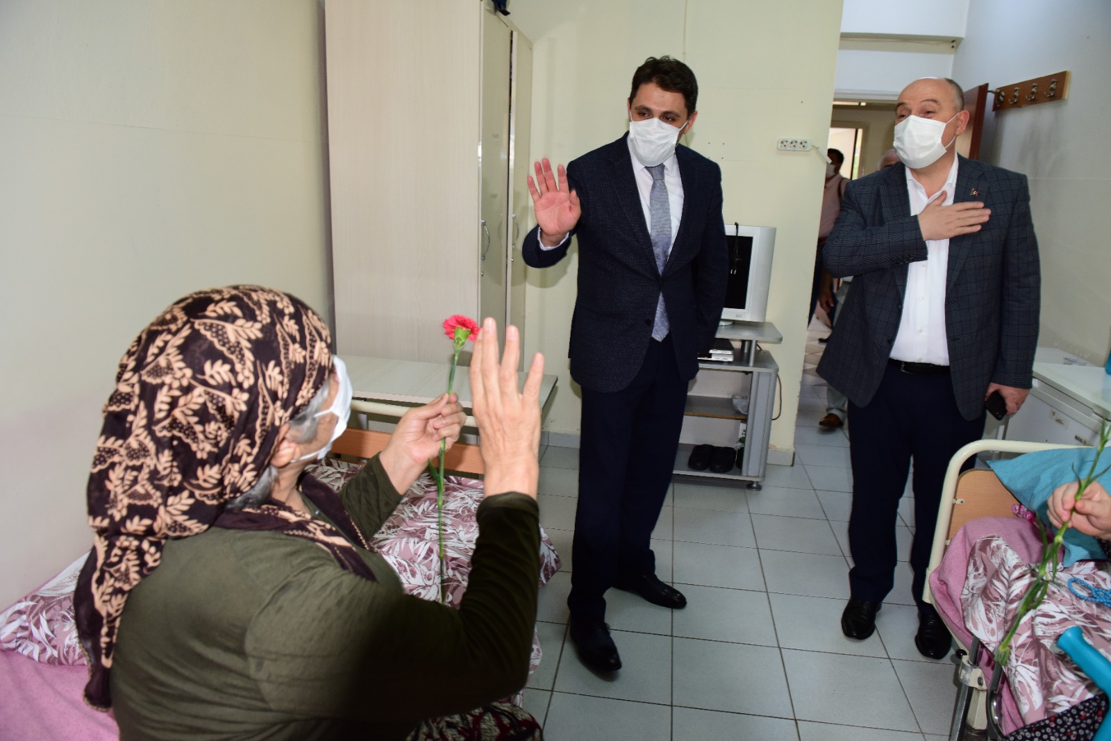 İlk olarak huzurevini ziyaret eden Vali Coşkun, büyüklerimize karanfil takdim ederek, bayramlarını kutladı.