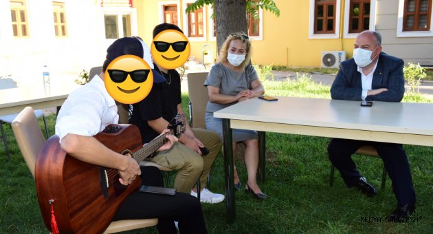 Huzurevi ve çocuk evleri ziyareti esnasında Vali Ömer Faruk Coşkun’a misafirlerimiz tarafından bir de müzik dinletisi sunuldu.