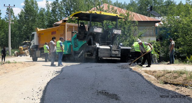 Kahramanmaraş Büyükşehir Belediyesi, Göksun ilçesine bağlı Çağlayan Mahallesinde yaklaşık 1 kilometre uzunluğundaki arterde sıcak asfalt çalışmalarını sürdürüyor.