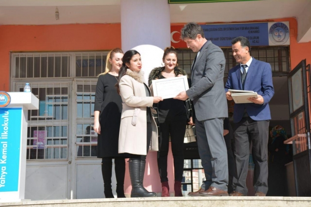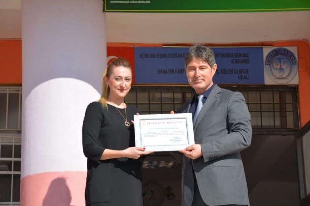 Projemize katkı sağlayan Müdür yardımcıları Talip Kurt, Hasan Kesici ve Eyüp Dilik’eTeşekkür belgelerini İl Milli Eğitim Müdür Yardımcısı Zekeriya Kahveci,Öğretmenlerimiz Zuhal Küçükdağlı, Tuğba Benli, M.Akifİpçioğlu ve Ayşegül Arsan’a  iseİl Milli Eğitim Müdür Yardımcısı Ahmet Akküncü Teşekkür belgelerini takdim etti.