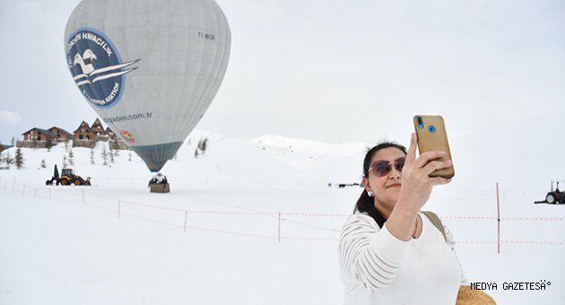 Yedikuyular Kayak Merkezi'nde sıcak hava balonu uçuşu yapıldı