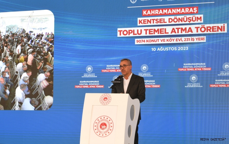 Bakan Özhaseki, “Deprem bölgesi belediye başkanlarımızla Ankara’da gerçekleştirdiğimiz toplantının ardından yerinde dönüşüm projemizi hayata geçirdik. 100 metrekarelik bir ev için 500 bin TL hibe ve 2 sene ödemesiz 10 yıl faizsiz 500 bin TL kredi olmak üzere 1 Milyon TL’lik destek veriyoruz. Evin metrekare büyüklüğüne göre kredi miktarı artıyor. Fay kırıkları üzerinde, dere yataklarında, sıvılaşma olan yerlerde ve zemini uygun olmayan bölgelerde yapıya asla izin vermeyeceğiz. Şehir meydanlarını da bakanlık olarak biz yapacağız. Bugün de Kahramanmaraş’ta 9 bin 74 konut ve 231 iş yerinin temelini atıyoruz. Şehrimize, ülkemize hayırlı olsun” dedi.Kahramanmaraş İçin Önemli Bir Adım