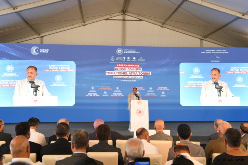 Çevre, Şehircilik ve İklim Değişikliği Bakanı Mehmet Özhaseki, “Depremin ilk anında Sayın Cumhurbaşkanımız deprem bölgesine bakanlarımızı, valilerimizi görevlendirdi. Ülkemizin dört bir yanından belediyelerimizi bölgeye yardım için sevk ettik. Bütün Türkiye ayaktaydı. Depremzede kardeşlerimizin yardımına el birliğiyle koştuk. Yaklaşık 1 milyon 905 bin kardeşimiz şu an evlerinden uzakta. 80 bine yakın kardeşimiz yurtlarımızda, sosyal tesislerimizde kalıyor. 470 bin civarında kardeşimiz de konteynerkentlerde yaşıyor. 320 bin ailemize kira yardımında bulunuyoruz. Bakanlık ve hükümet olarak hedefimiz deprem bölgesinde kalıcı konutları kısa sürede inşa ederek kardeşlerimizi evlerine kavuşturmak. 180 bin konutun ihalesini yaptık, inşaatlar devam ediyor” diye konuştu.Yerinde Dönüşüm Desteği